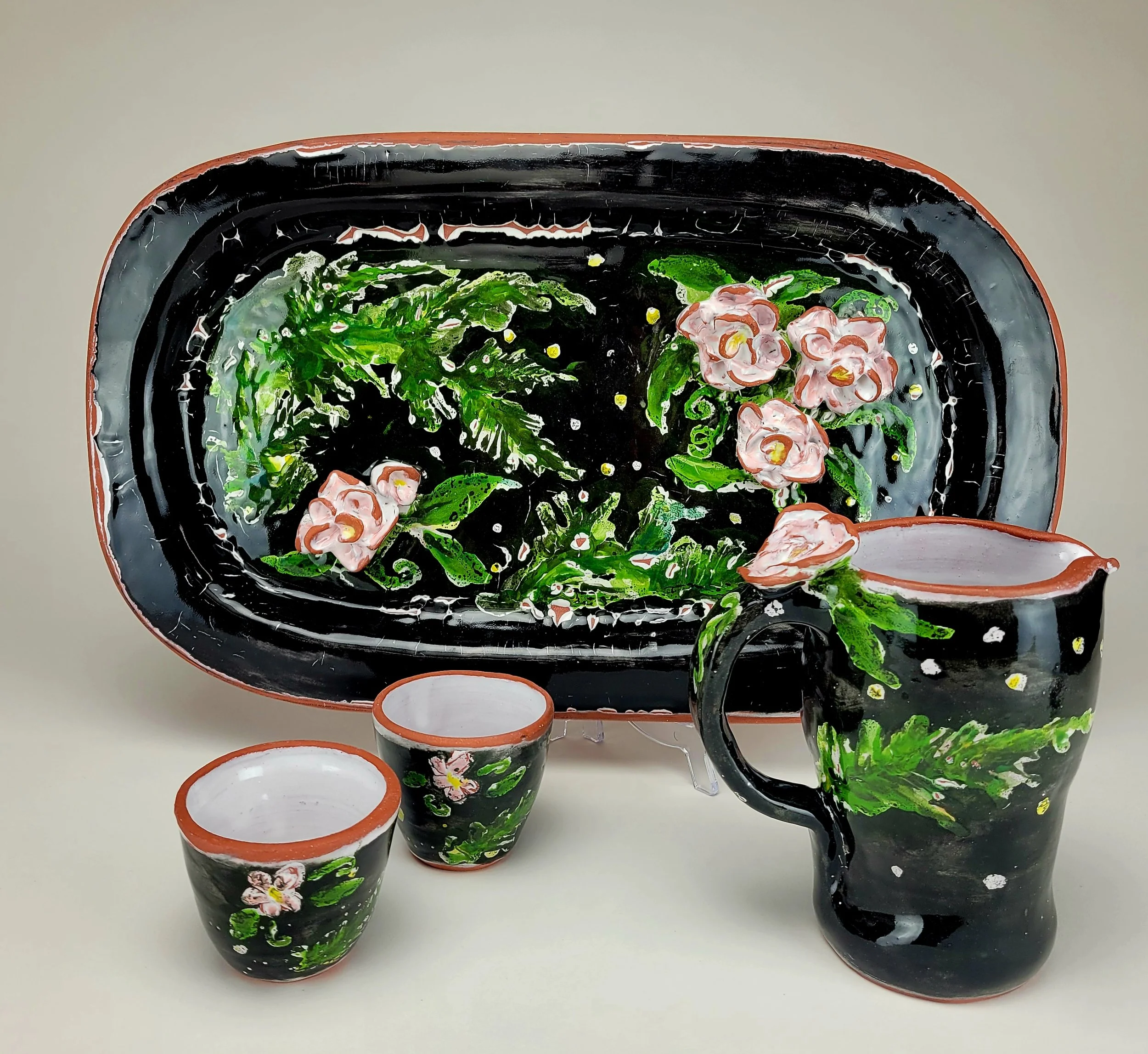 My approach to clay is deeply shaped by my 25 years as a professional chef. In the kitchen, I learned the importance of chemistry, timing, and presentation, skills I now use every day in the studio. Whether I’m applying a glaze or sculpting a delicate floral detail, I bring that same professional discipline and eye for detail to every piece I make.