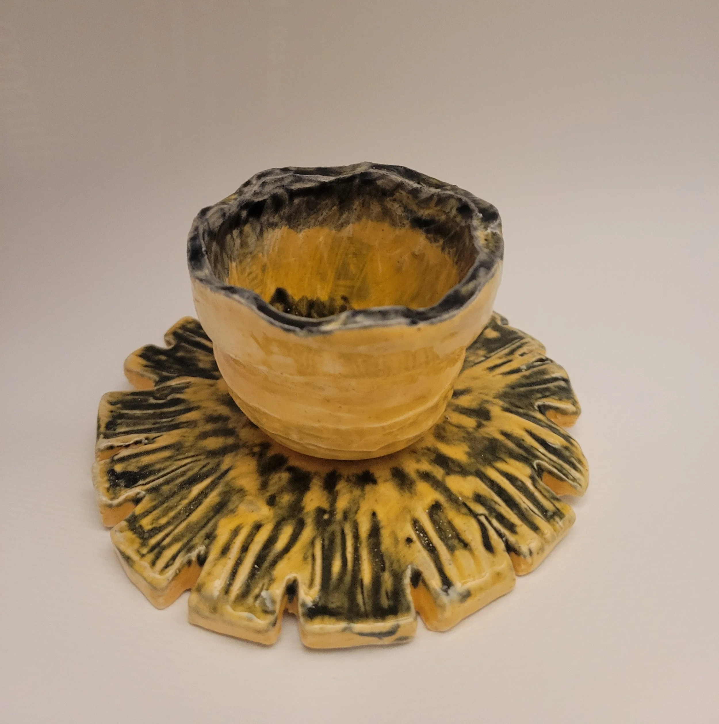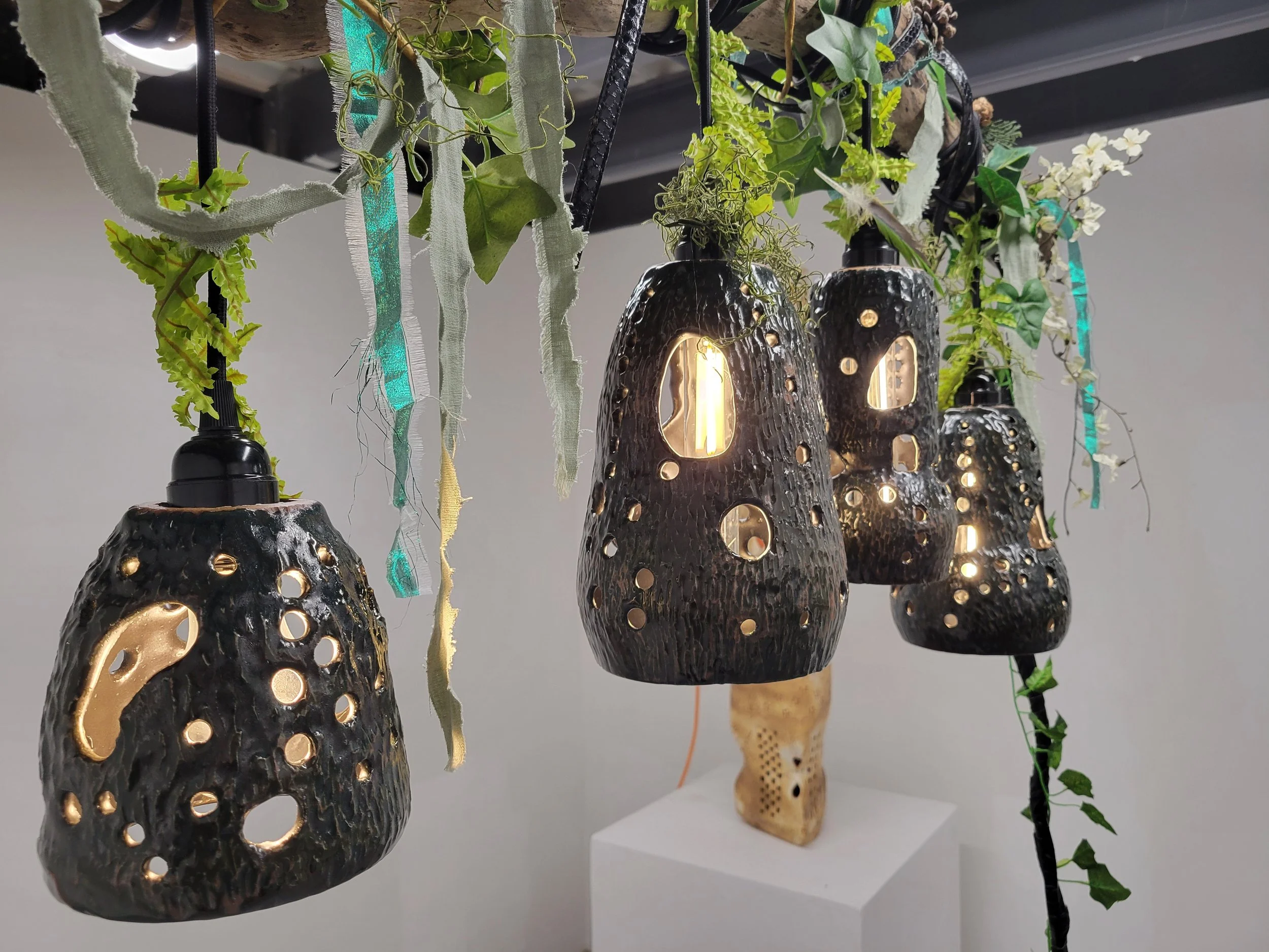 I am a ceramic artist and BFA student at the Hartford Art School, specializing in high-relief sculpture and colorful glazing. My work ranges from detailed wheel-thrown pottery to small-scale lighting installations. I create pieces that feel both natural and a little bit magical. I am inspired by the textures of the New England landscape, whether capturing the form of a butterfly chrysalis,a sunset over the valley, or the colonial palettes of vintage ceramics. By integrating found elements such as cloth and hand-collected driftwood, I develop a unique patina thats brings a sense of whimsy and wonder to my lighting projects.